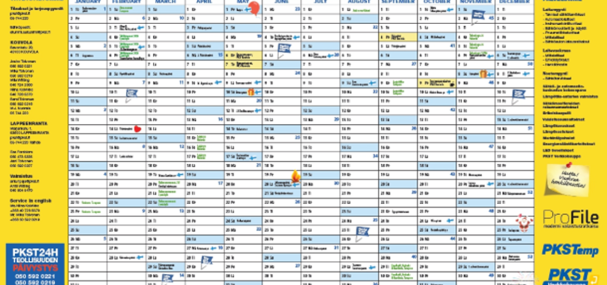 - PKST 2026 Seinäkalenterilla näet koko vuoden yhdellä kertaa.